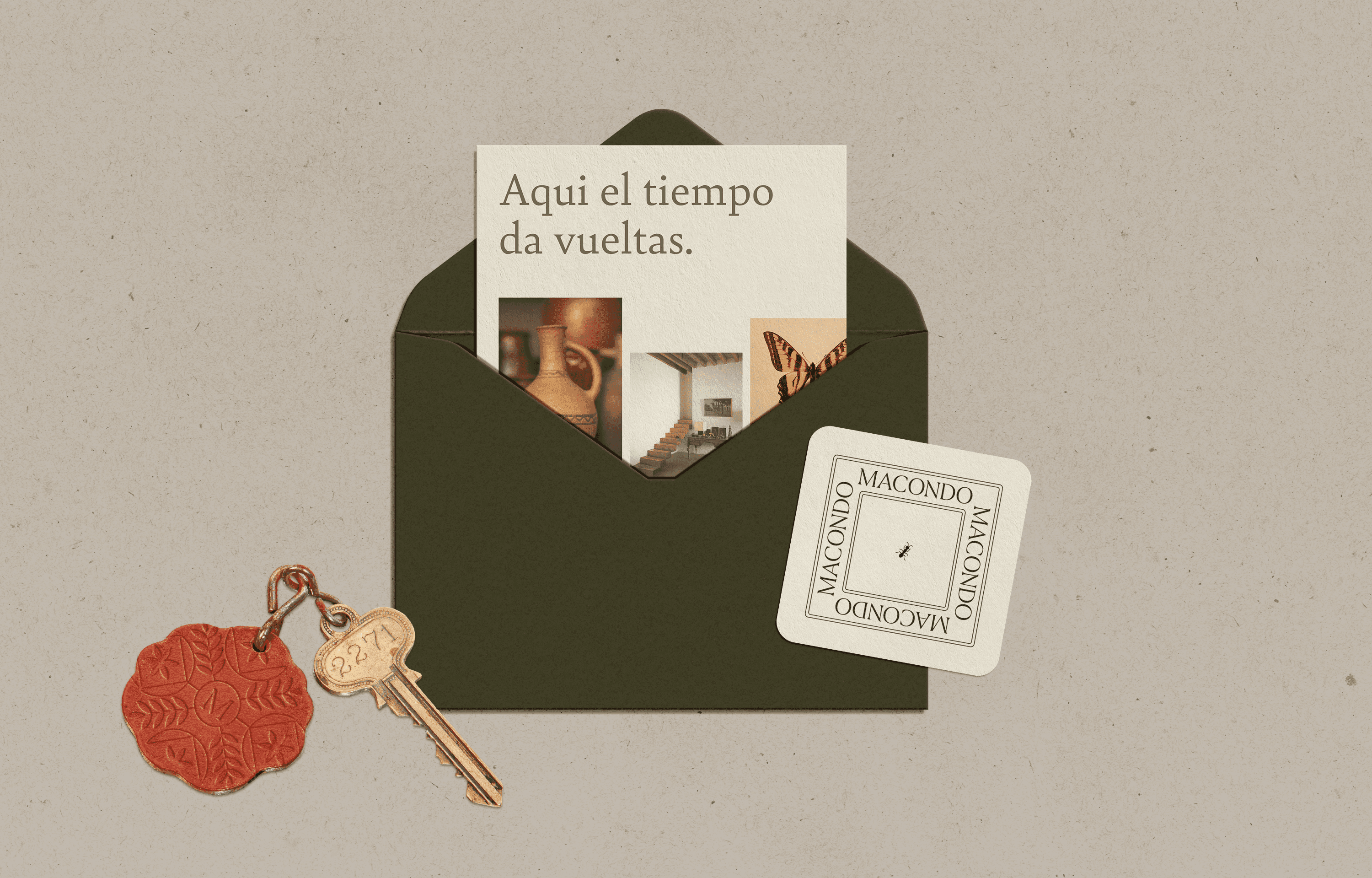 Las ruinas del mítico pueblo de Macondo han sido recientemente descubiertas y restauradas tras un meticuloso proceso arqueológico. Este hallazgo da vida a un hotel boutique que invita a los visitantes a sumergirse en el legado del realismo mágico de Cien Años de Soledad. La identidad visual se construye a partir de artefactos rescatados, piezas que evocan memorias, símbolos y materiales propios de este universo literario. Todo el sistema funciona como un archivo vivo que reconstruye el pueblo para los lectores más comprometidos con la obra, como yo. Ofreciendo una experiencia inmersiva que honra la magia de la historia.